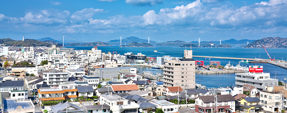 江戸時代初期に、藤堂高虎が瀬戸内海に臨む海岸に築いた平城。天守閣など昭和55年(1980)以降に再建された建造物と、江戸時代から残る石垣・内堀が作る景観は、まるで水上の要塞のよう。